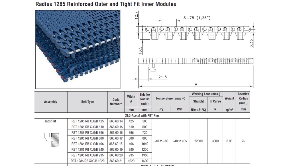 The belt width is available start from 255mm, 340mm, 425mm, 510mm, 595mm, 680mm, 765mm, 850mm, 935mm and 1020mm