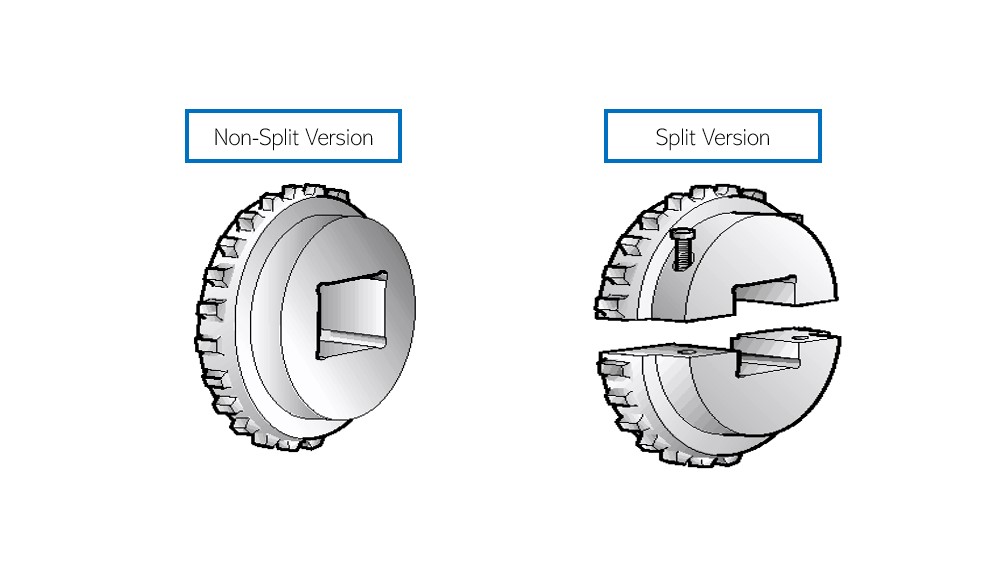based on the version, it has non split sprocket and split sprocket.